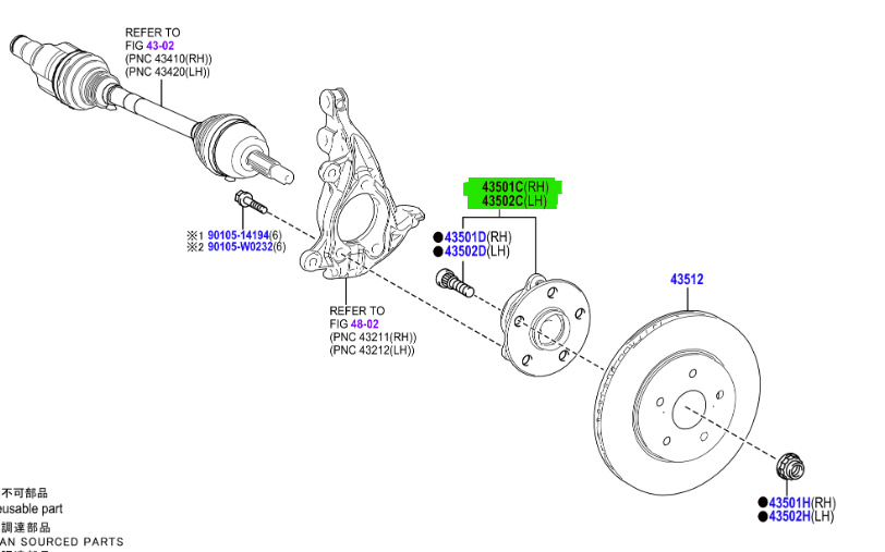 Toyota Corolla (2019-present) Front Wheel Hub Bearing Assembly