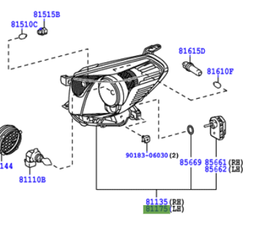 Toyota part number – 81170-74010