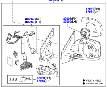 Toyota Land Cruiser 200 2007- Outer Mirror Assy R,H