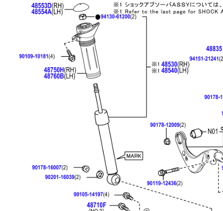 ABSORBER ASSY, SHOCK, REAR LH, MARK 48530-42140